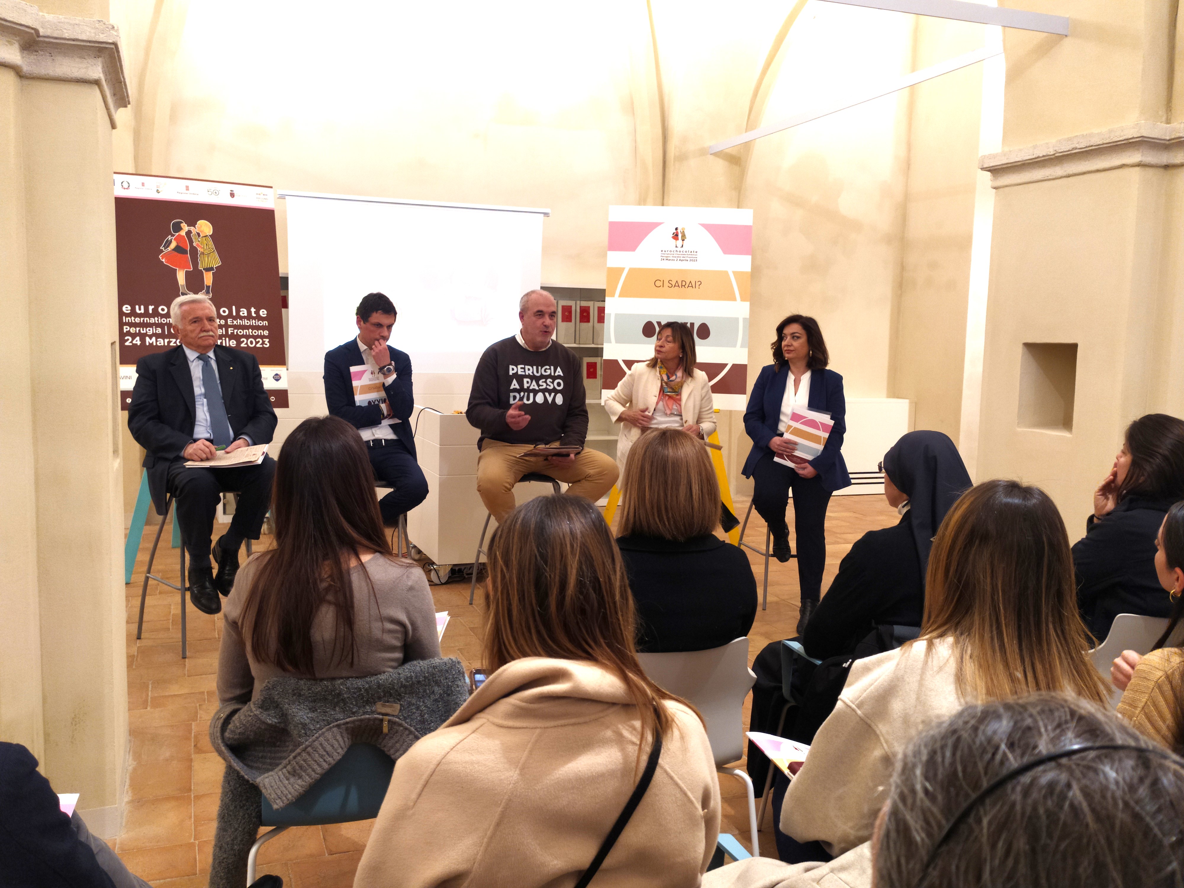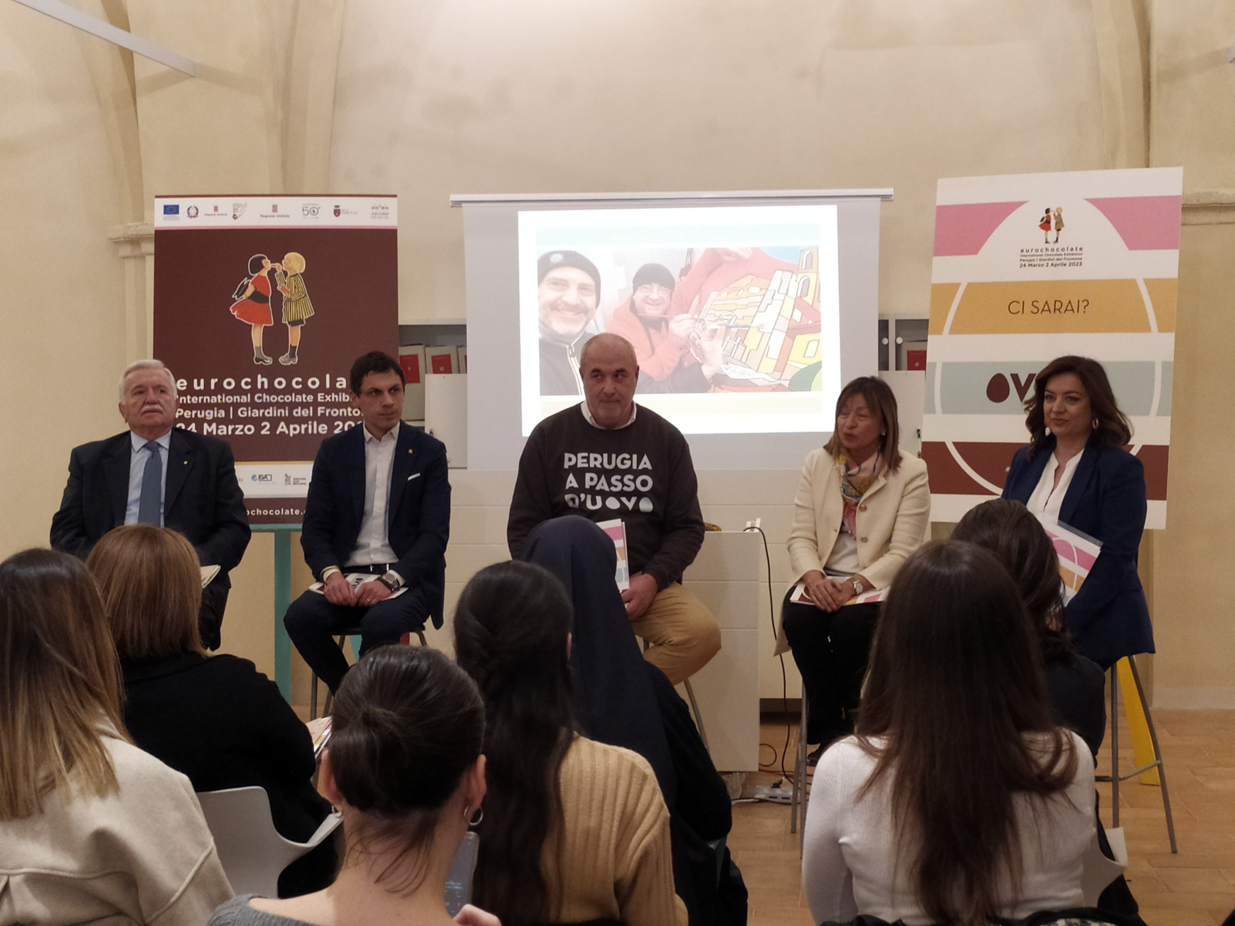 Si è tenuta venerdì 17 marzo, presso l’affollata Biblioteca degli Arconi, la conferenza stampa di lancio di Eurochocolate alla presenza del Presidente della manifestazione Eugenio Guarducci, della Presidente della Regione Umbria Donatella Tesei, del Sindaco del Comune di Perugia Andrea Romizi, dell’Amministratore Unico di Sviluppumbria Michela Sciurpa, del Presidente della Camera Commercio Umbria Giorgio Mencaroni ed altri ospiti illustri.