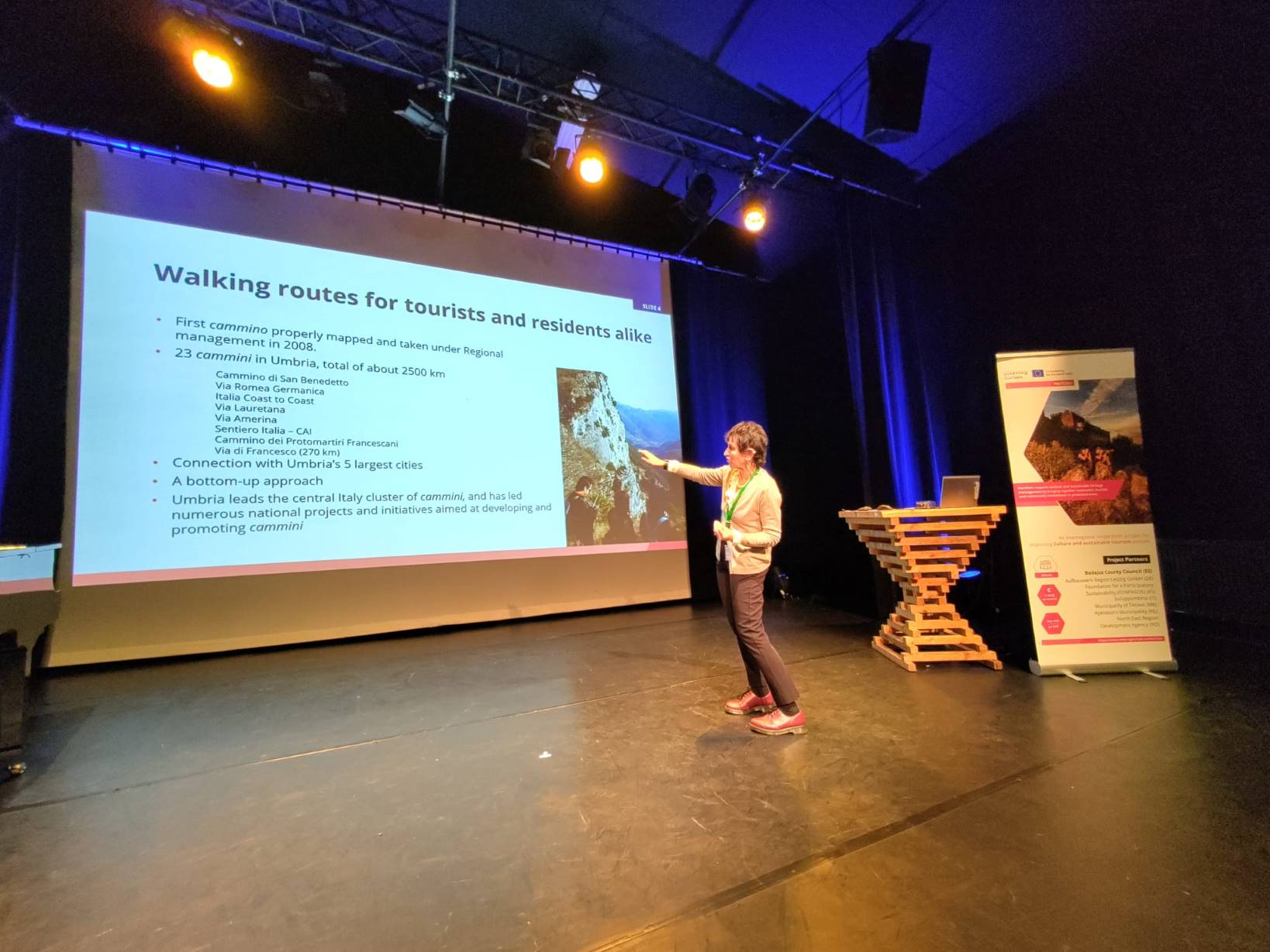 Anche i partner di Herition hanno presentato buone pratiche dai loro territori. Chiara Dall’Aglio di Sviluppumbria ha illustrato come l’Umbria sviluppi e promuova il turismo lento, attirando visitatori che percorrono i cammini regionali a piedi o in bicicletta, attraversando allo stesso tempo luoghi di grande interesse comunale, spesso in località distanti dai principali attrattori turistici.