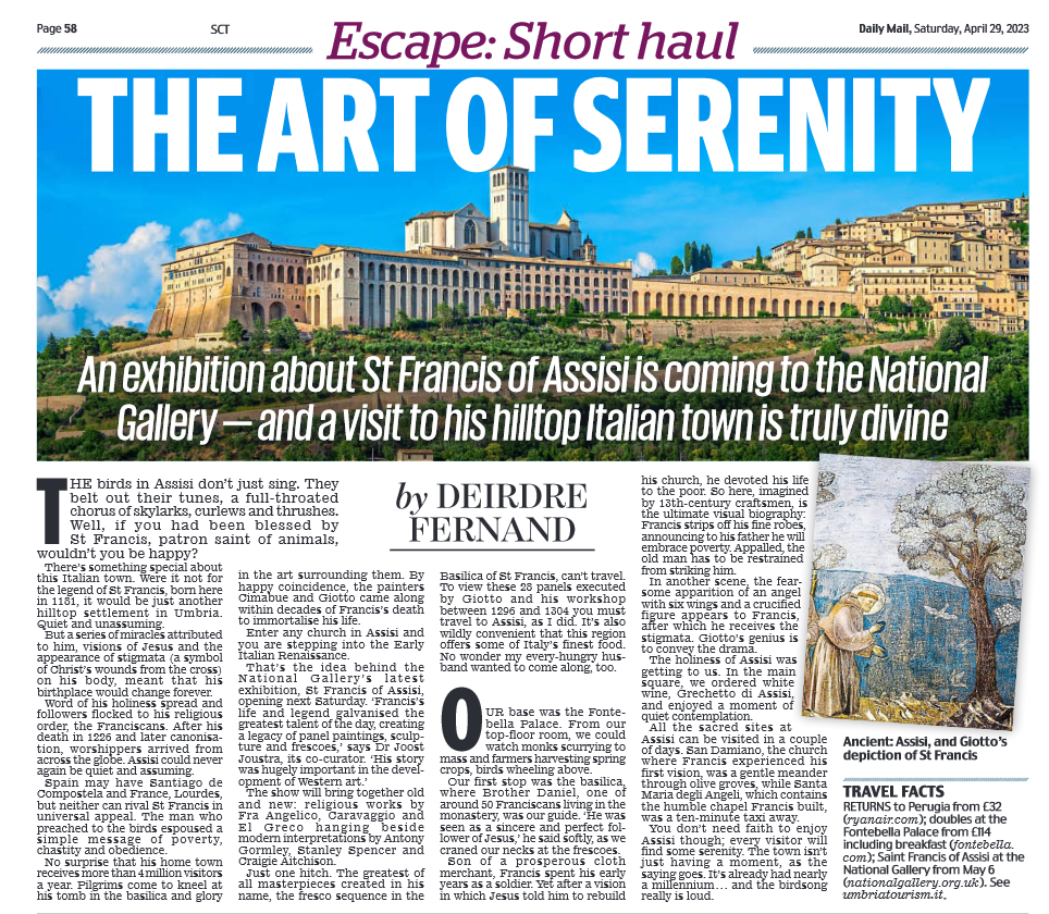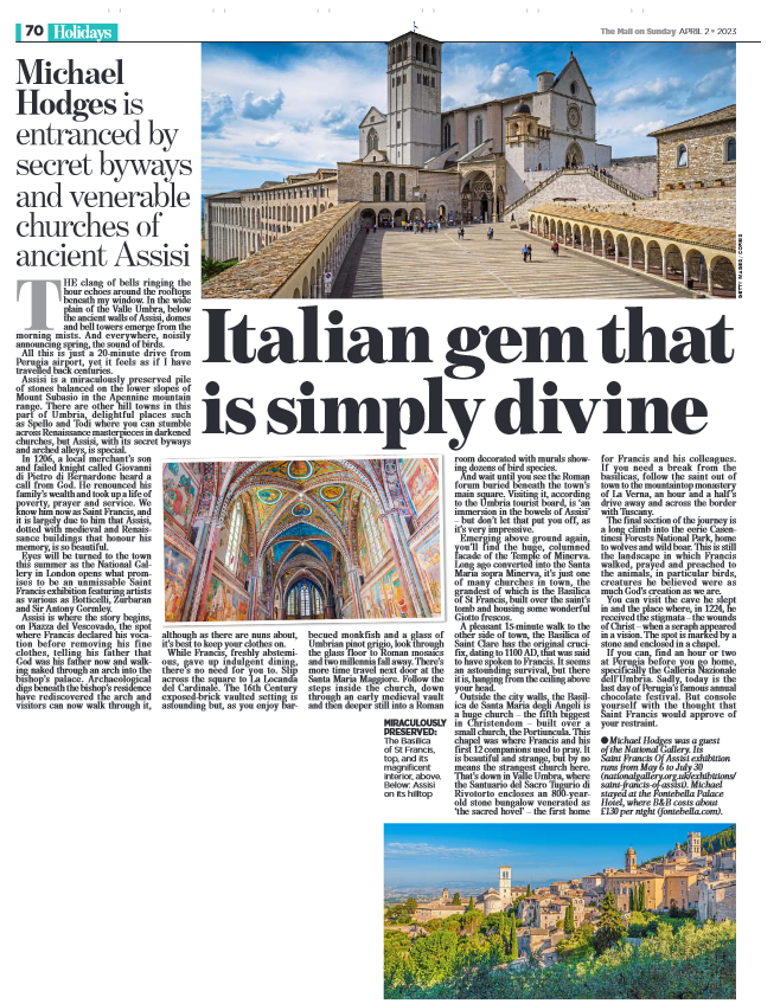 Il Daily Mail (tiratura di circa 800.000 copie) ed il The Mail on Sunday (tiratura di circa 670.000 copie) hanno recentemente pubblicato due articoli dedicati alla nostra regione con un focus riservato ad Assisi.